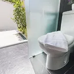 Badeværelset har separat toilet og en bruser, mens værelse har en terrasse, kaffe- og tefaciliteter, et opholdsområde.